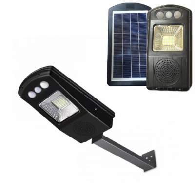 Corp Iluminat Lampa solara cu LED-uri, putere 30W, Proiector Exterior Solar MP3 cu Boxa Bluetooth, Senzori de Miscare si Lumina, Suport de prindere si Telecomanda CCLAMP CL-180.