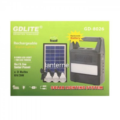 Kit Incarcator cu Panou Solar si 3 Becuri LED GdLite GD8026 6V4Ah