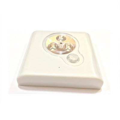 Lampa de Veghe LED cu Senzor de Miscare si Lumina, 3 LEDuri lumina Alb Rece, Montaj pe Perete, functioneaza cu 3 Baterii AAA, neincluse. Atentie! Se aprinde doar cand detecteaza miscare in spatii intunecoase (nu se aprinde daca lumina este puternica).