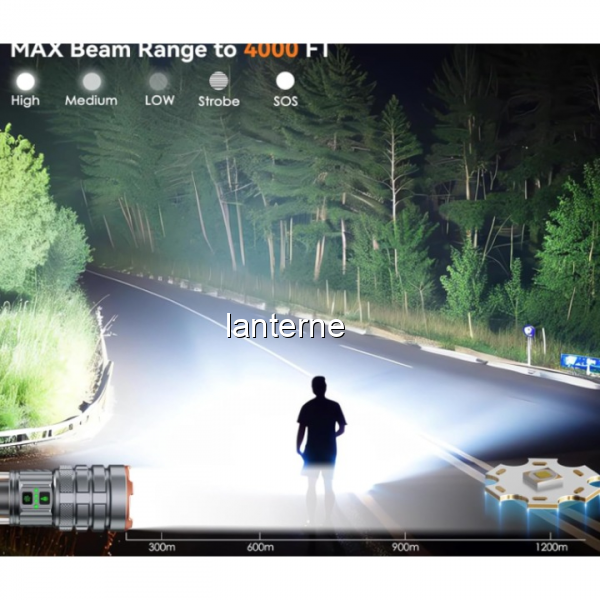 Cu o rază de iluminare de până la 3000 metri, lanterna dispune de zoom telescopic reglabil, permițând focalizarea precisă a luminii în funcție de nevoi.