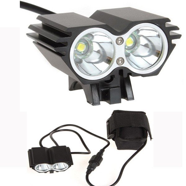 Lanterna LED Frontala si de Bicicleta Multifunctionala cu doua LEDuri 3W Power Light MX-F09-T6 MXF09T6 tip SolarStorm, cu doua LED-uri cu Lumina Puternica. Lanterne Frontale convertibile in Lanterne pentru Biciclisti, cu 4 Acumulatori 18650.