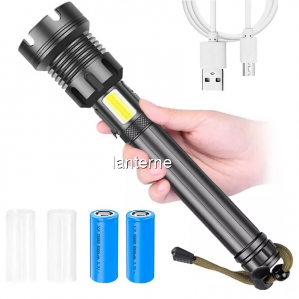 Fara adaptori, puteti alimenta lanterna cu 2 acumulatori tip 26650 3.7V (inclusi).