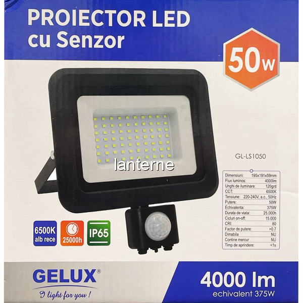 Proiector LED senzor miscare Gelux 50W 6500K 4000LM GL-LS1050 CNN51349 Pret: 164 Lei